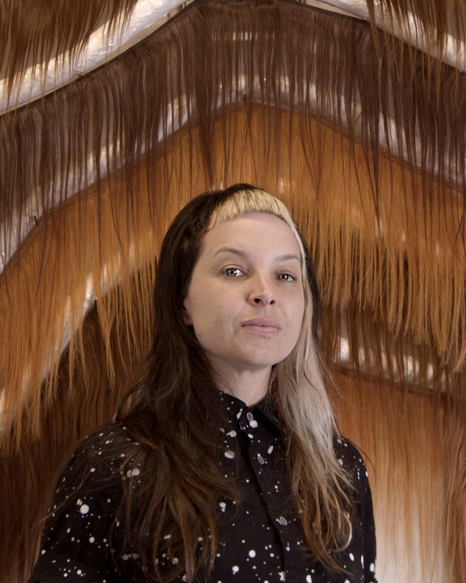 My materials intentionally blur the boundary between fleshy, vulnerable bodies and sterile, controlled environments. I primarily work with construction materials (conduit, concrete, mesh, fasteners), synthetics that mimic organics (singed and torn expanding foam, melted plastic, bioplastic), and traces of the human body (hair, sinew). My sculptures are designed to be inhabited—physically or imaginatively—often employing architectural representational techniques like topographical maps and sectional drawings.